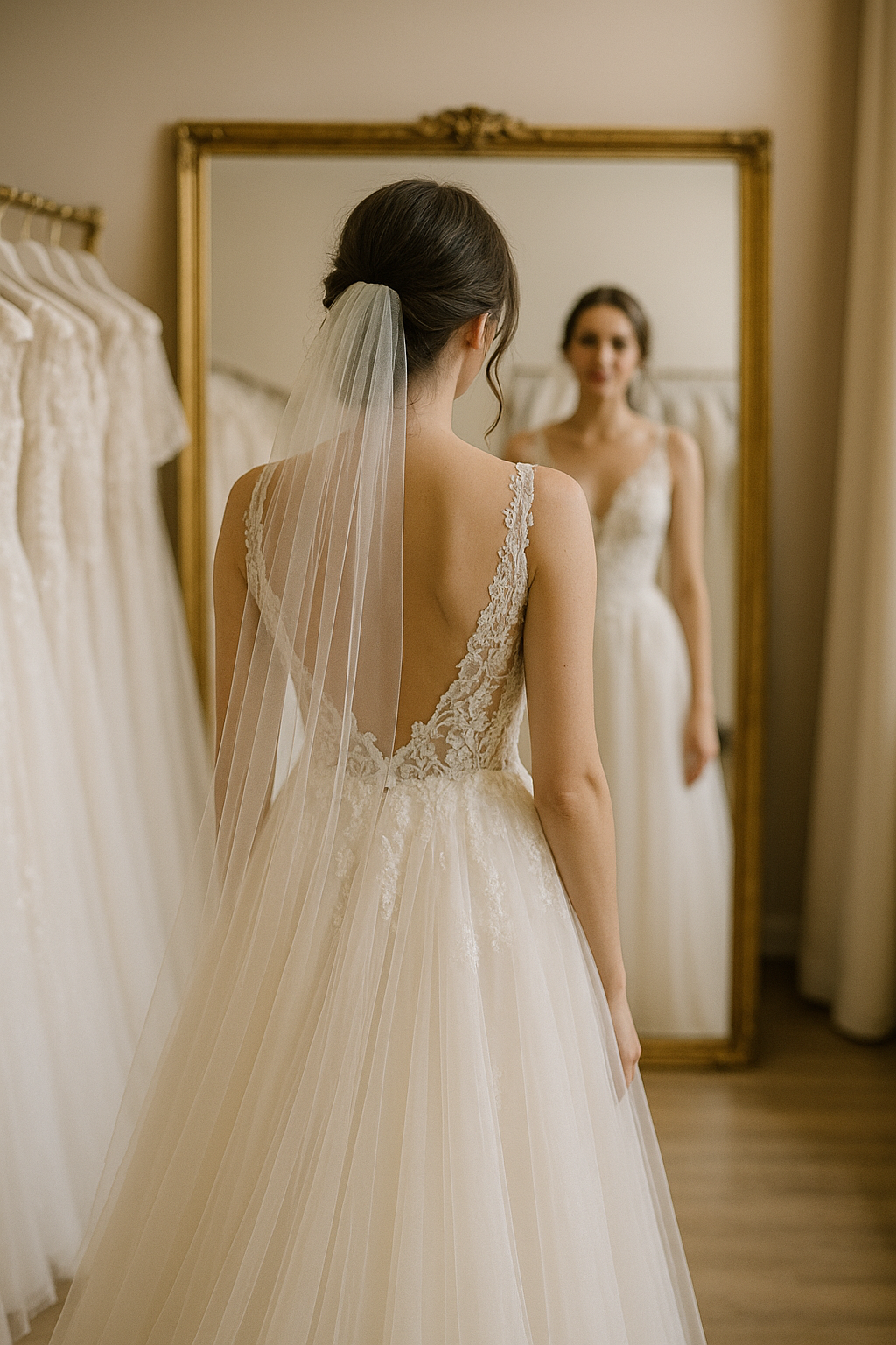 Bei uns beginnt dein Termin in einer ruhigen und warmen Atmosphäre, in der du ankommen kannst und dich sofort sicher fühlst. Du kannst dir gelassen Zeit nehmen, verschiedene Stile ausprobieren und ganz in deinem eigenen Tempo spüren, welches Kleid deine Persönlichkeit zum Leuchten bringt. Jede Braut ist willkommen, ganz gleich ob du eine zarte Silhouette hast, Curvy bist oder ein kleineres Budget mitbringst. Wir begleiten dich mit Gefühl, Aufmerksamkeit und echter Freude, damit dieser Moment zu einer schönen Erinnerung wird und du dein Brautkleid nicht nur auswählst, sondern wirklich erlebst.