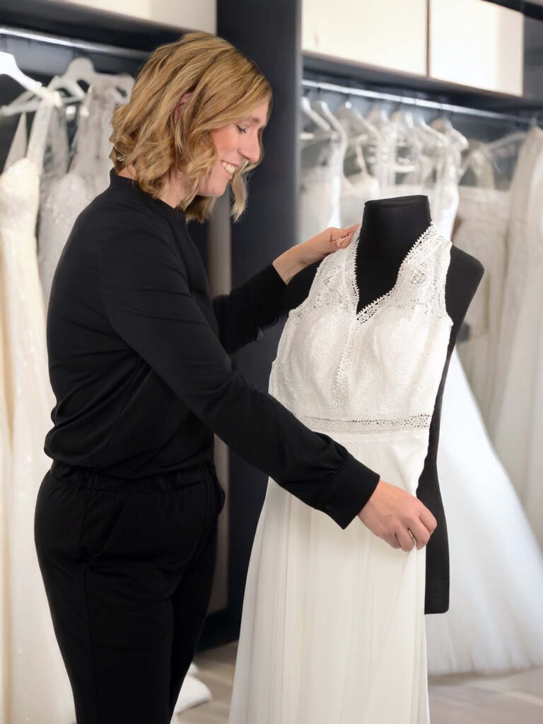 Wenn du dein Kleid gefunden hast, entsteht ein besonderer Moment voller Freude und Erleichterung. Wir feiern diesen Augenblick mit dir und sorgen dafür, dass du dich wohl und sicher in deinem Brautkleid fühlst. Auf Wunsch führen Änderungsschneidereien auch Änderungen und Anpassungen durch.